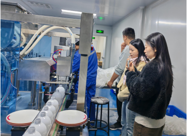在企业管理人员的陪同下,三位教师深入化妆品生产车间与质量控制实验室进行实地考察。期间,教师们特别看望了正在该公司实习的我校23级检验专业一名学生,详细了解其实习内容与工作表现。该同学在质检岗位承担原料与成品的微生物检测工作,态度认真、操作规范,展现了扎实的专业素养,获得企业指导老师的高度认可。