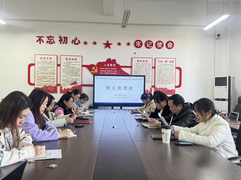 为进一步推动2026届毕业生顺利就业、高质量就业,1月9日下午,食品药品学院在6-304会议室召开2026届毕业生就业工作推进会,学院领导班子成员、专业主任、毕业班辅导员参加了此次会议,会议由院直属党支部副书记陈剑岚老师主持。