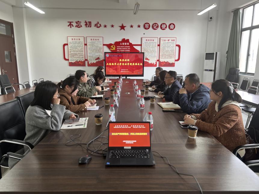 2026年3月25日,上海海洋大学食品学院党委书记李柏林一行来我校食品药品学院调研座谈,一同来访的领导及老师包括党委副书记刘鹏、食科系主任卢瑛、生物制药专业负责人刘克海、学工办主任邓高燕。上海中侨职业技术大学副校长兼食品药品学院院长吴酉芝、副院长王园、党支部副书记陈剑岚、专业主任欧已铭、院长助理贺玉珊、团委书记戴莹莹等出席座谈会,双方开展了深入交流。