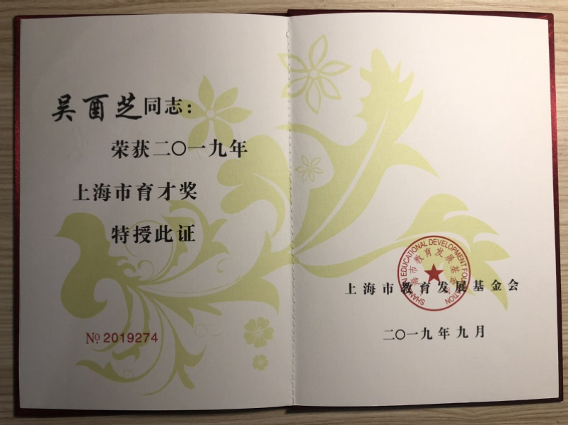 Recently, Wu Youzhi, a teacher from the Food School of our school, won the 2019 Shanghai Yucai Award according to the announcement of the 2019 Shanghai Yucai Award Winners by Shanghai Education Development Foundation. The Shanghai Yucai Award was established by Shanghai Education Development Foundation in 1995 to encourage teachers and educators who have been engaged in higher education for a long time and made outstanding contributions to education, teaching, scientific research and educational management. The selection and award activities of Shanghai Yucai Award have played a positive role in publicizing and giving full play to the social influence of college teachers in Shanghai, mobilizing their enthusiasm, and promoting the reform and development of Shanghai higher education.