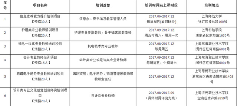 Summary Table of 2017 Shanghai Private Higher Education Teacher Training Project for Strengthening Teachers