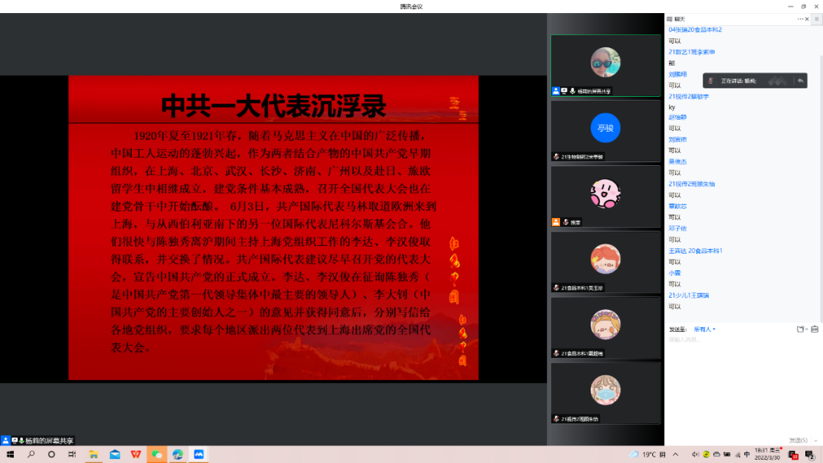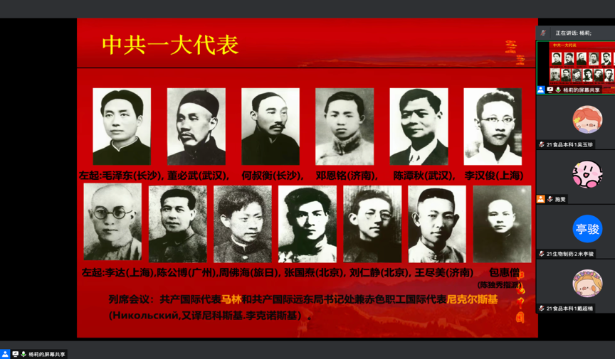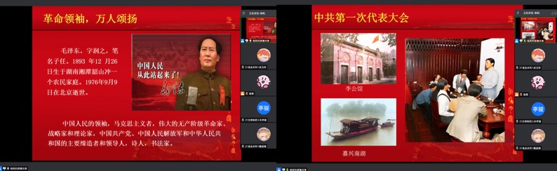 On the evening of 30th, under the guidance of teacher Yang Li, we introduced today's theme from The Ups and Downs of the Representatives of the CPC National Congress. The meeting of the CPC National Congress clarified the name of the party: the Communist Party of China; Formulated the party's program: the party's goal is to overthrow the bourgeois party, establish the dictatorship of the proletariat, and realize communism; The central task was defined: leading the workers' movement; Elected leading bodies: Chen Duxiu as Secretary of the Central Bureau; The convening of the Congress has a profound historical significance: since the Communist Party of China, China's revolutionary face has taken on a new look.