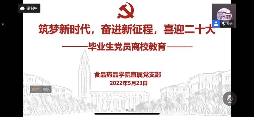 On May 23, 2022, the Party Branch directly under the University of Food and Pharmacy held an education conference for 2022 graduate Party members at the Tencent Conference. All Party members of the University attended the meeting, which was presided over by Chen Jianlan, deputy secretary of the Party Branch directly under the University of Food and Pharmacy.