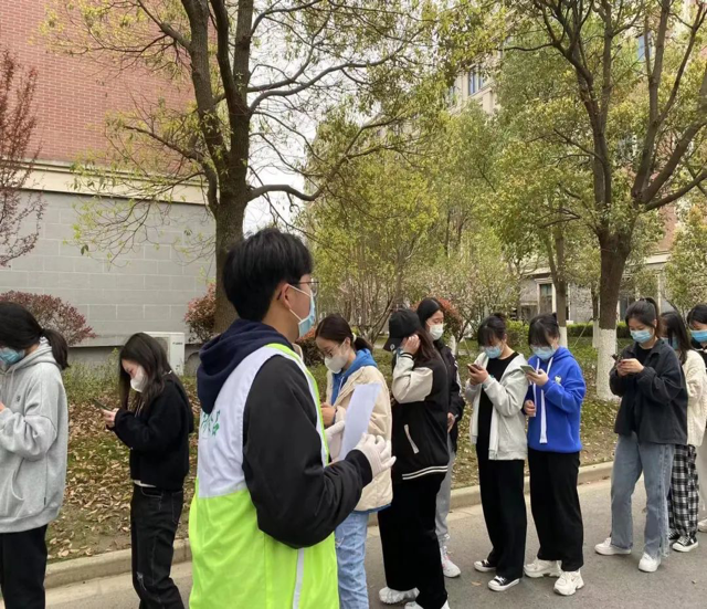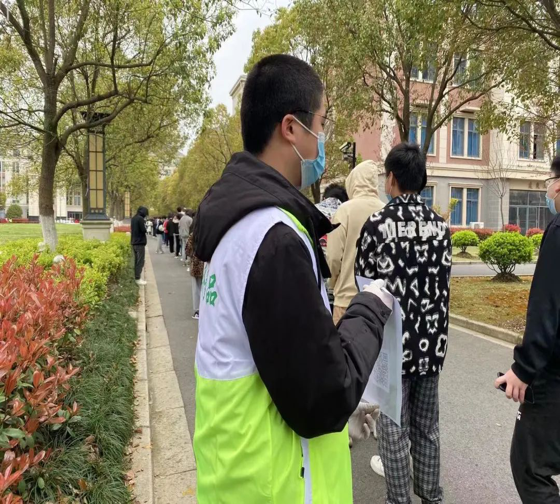Volunteers were in charge of team guidance, maintaining order, reminding students to wear masks, checking the health cloud registration code, and promoting epidemic prevention and control.