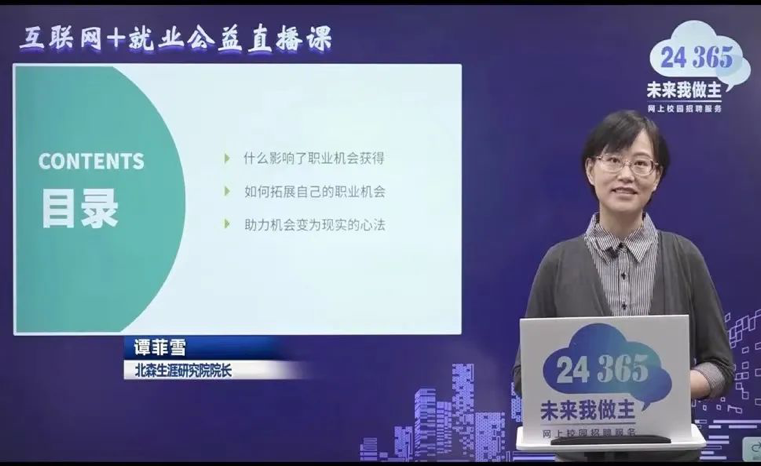 Main lecturer: Tan Feixue. Director of Beisen Career Research Institute, explained college students' employment and job hunting with the combination of rational and emotional thinking.