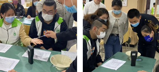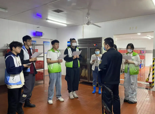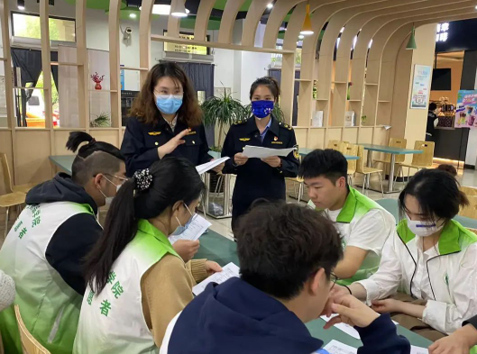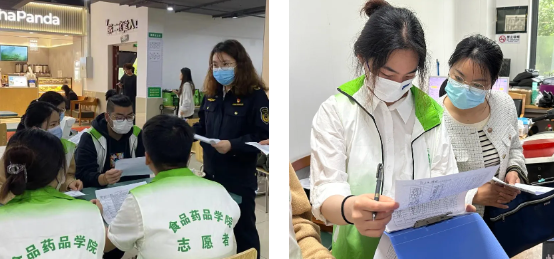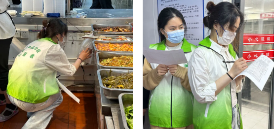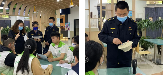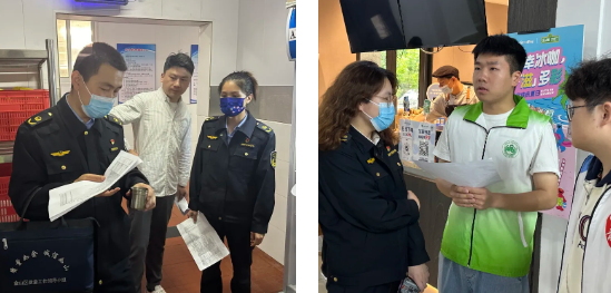 At the time of seasonal changes, the safety issues of school dining for teachers and students have received much attention. To strengthen campus food safety, promote the market supervision into campus party building brand, and enhance party branch cooperation. On May 11th at 10:00, the Food Safety Office of Zhangyan Town, the Market Supervision Institute of Zhangyan Town, various cafeteria managers, post service offices, the Safety Volunteer Detachment of Shanghai Zhongqiao Vocational and Technical University, and the Food Safety Volunteer Service Team of the School of Food and Pharmacy jointly carried out a food safety inspection in the cafeteria. During the process, our volunteers actively participated, combined with their professional knowledge, and cooperated with the Safe Volunteer Detachment of Shanghai Zhongqiao Vocational and Technical University to enhance their campus food safety management capabilities.