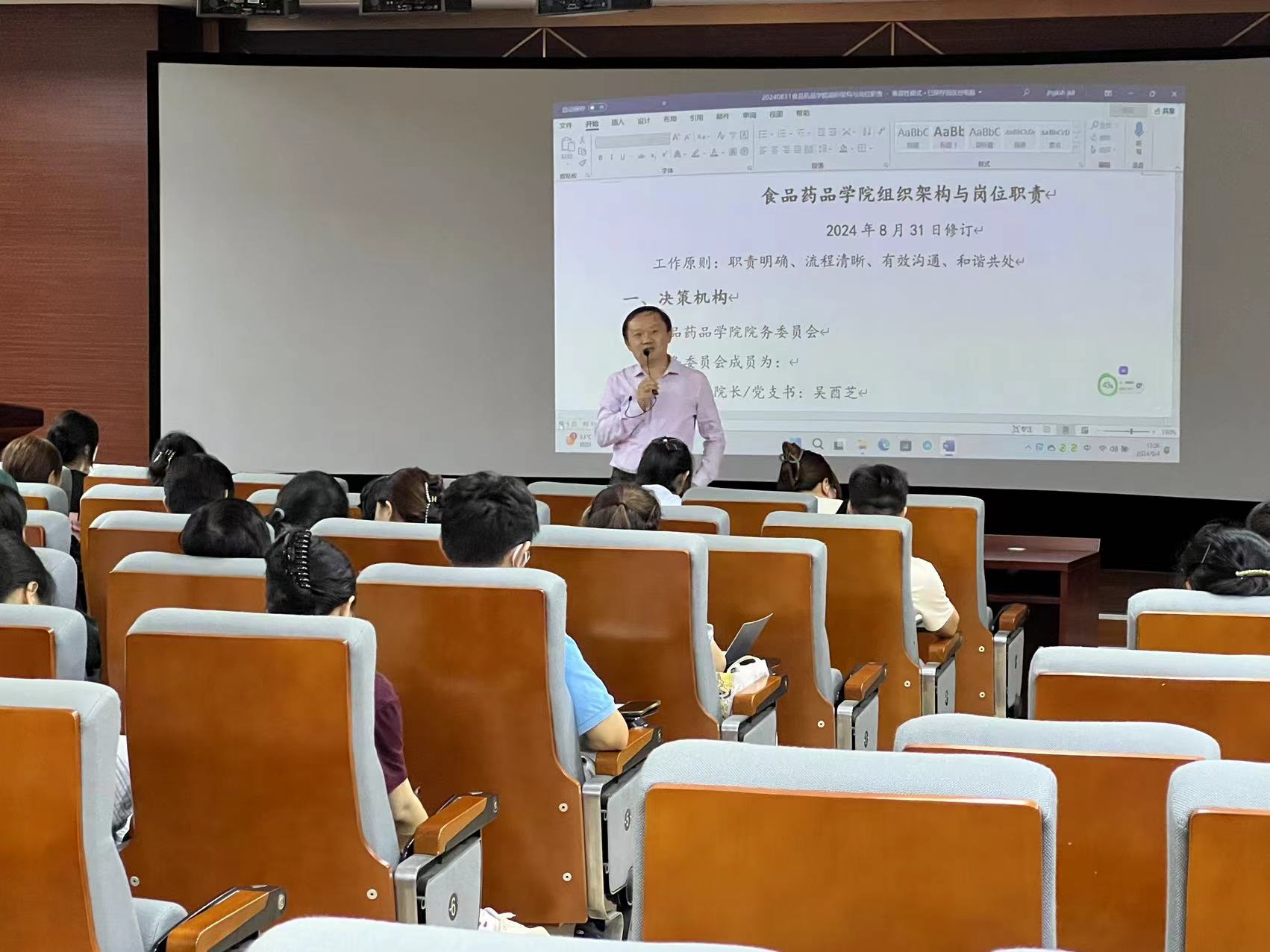 On the afternoon of September 4th, the School of Food and Pharmacy held a new semester faculty meeting at Building 6, Room 306. The meeting was chaired by Vice Dean Ji Jing and attended by Vice President and Dean of the School of Food and Pharmacy, Professor Wu Youzhi.