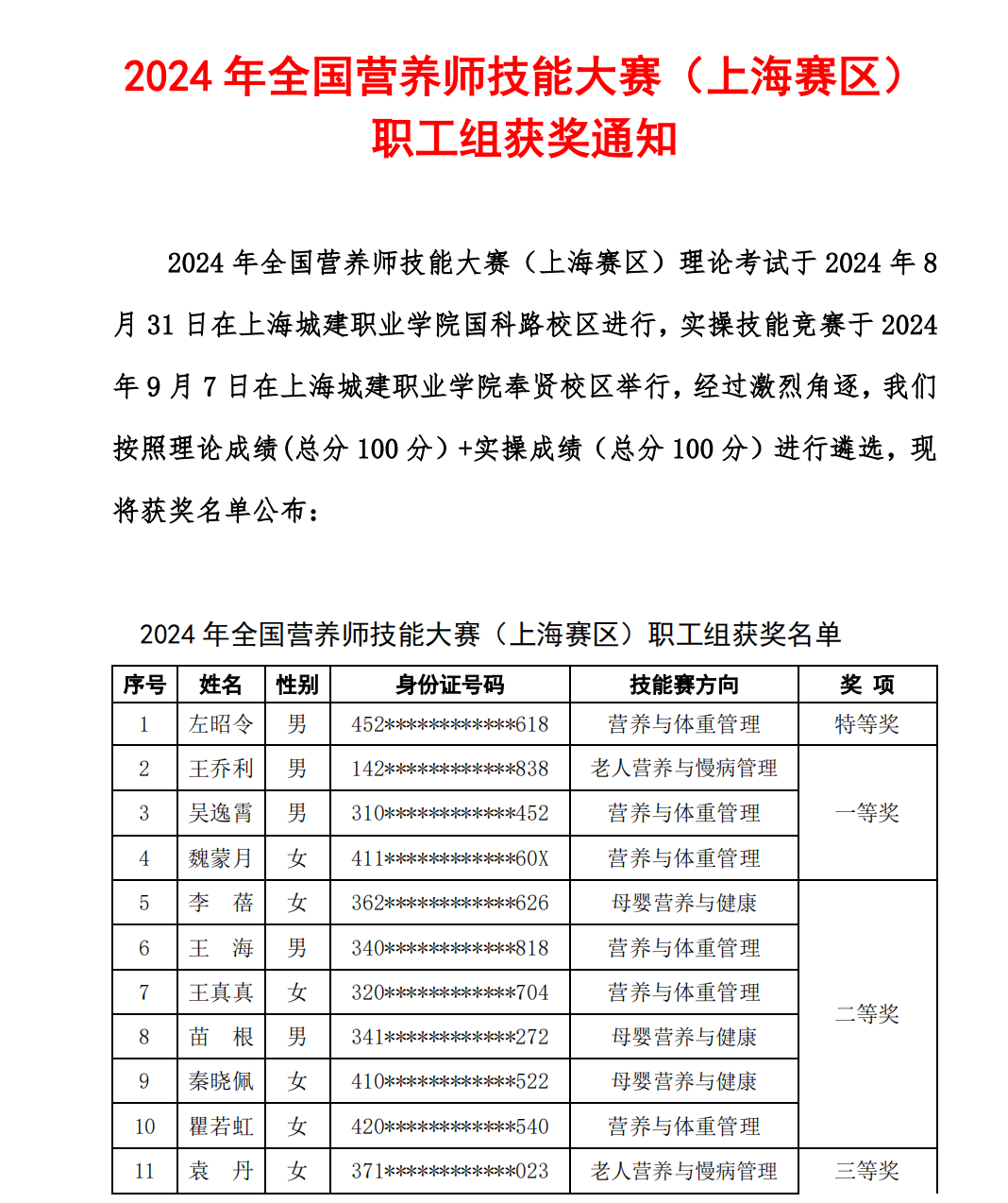 The content of this competition is designed based on the professional standards and skill requirements of Level 3 and Level 2 of the National Vocational Skills Standards for Public Nutritionists, combined with the development of industries and enterprises in the new era, and appropriately adding new knowledge and technology related content.
