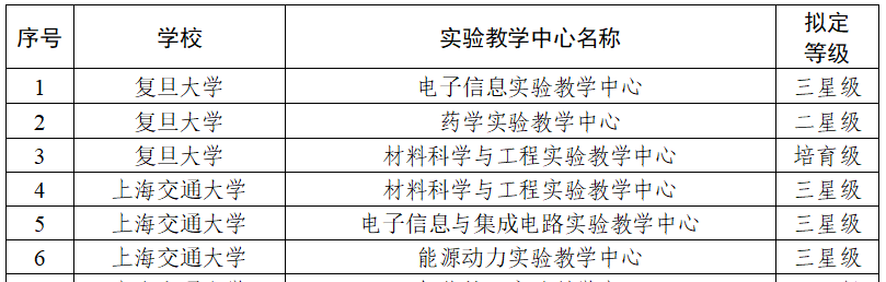 List of Experimental Teaching Centers to be Recognized as Shanghai Municipal Experimental Teaching Demonstration Centers