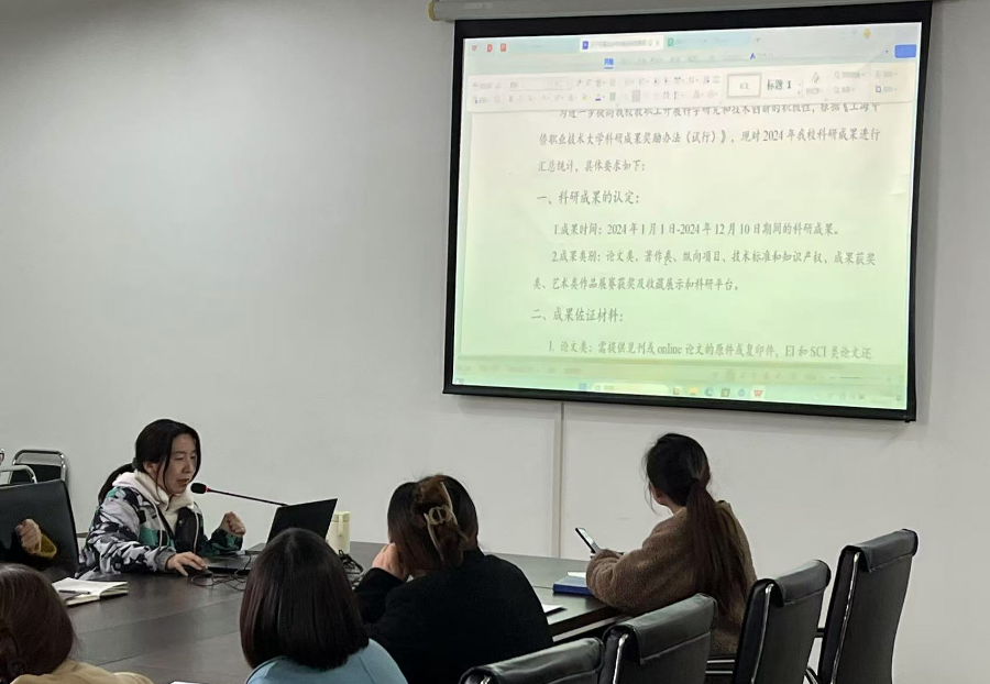 At the beginning of the meeting, Ji Jing provided a detailed explanation of the statistics and reward application documents for the school's research achievements in 2024, as well as the calculation and allocation methods for the college's research performance. She also put forward two requirements for the safety of the college's laboratories: 1. Every teacher must pay attention to laboratory safety issues, as one negligence may cause irreparable accidents. 2. Laboratory operations must comply with regulations. Before operation, it is not only necessary to explain the operation process in detail, but also to demonstrate and guide students one by one. More importantly, it is important to check whether students have operated properly.