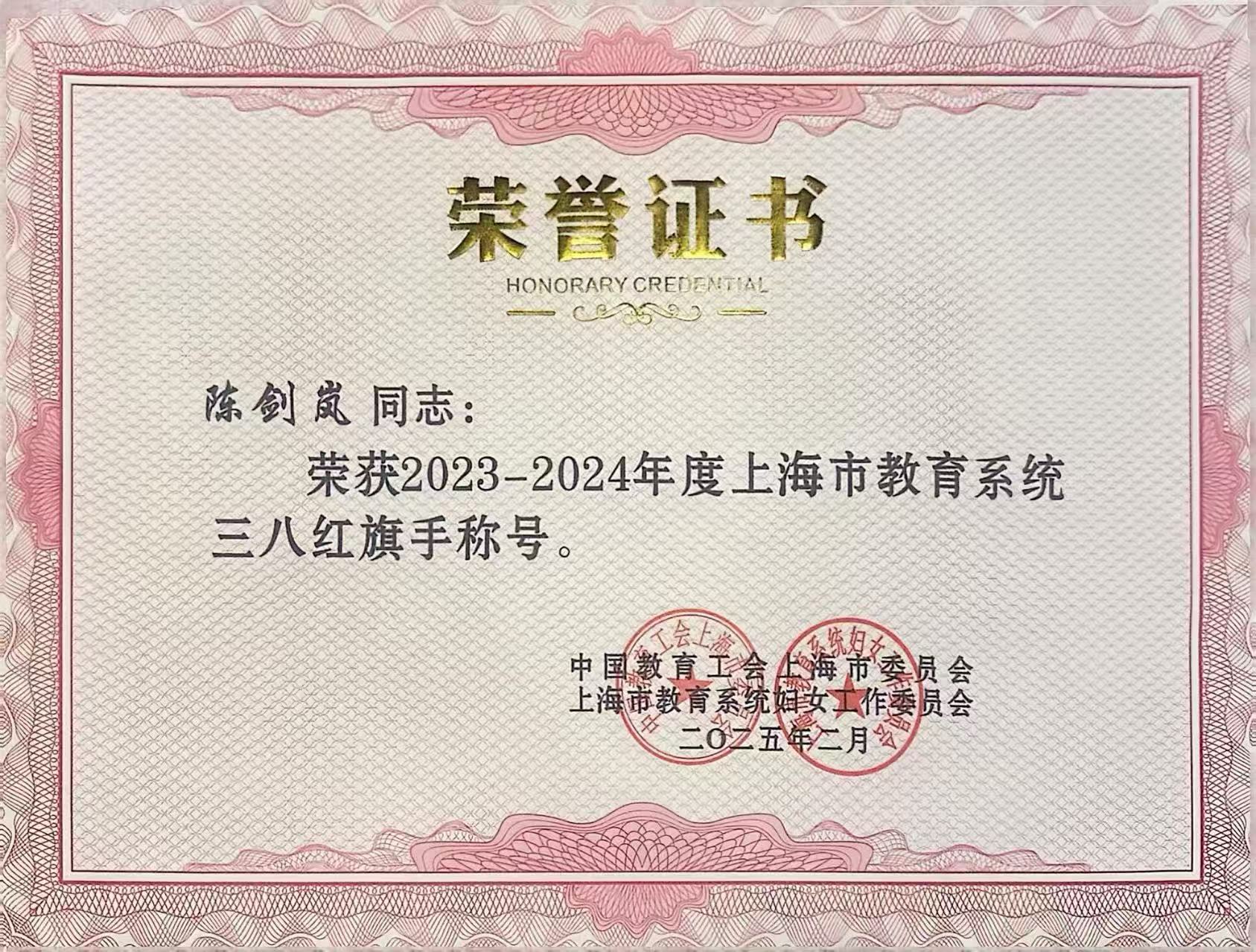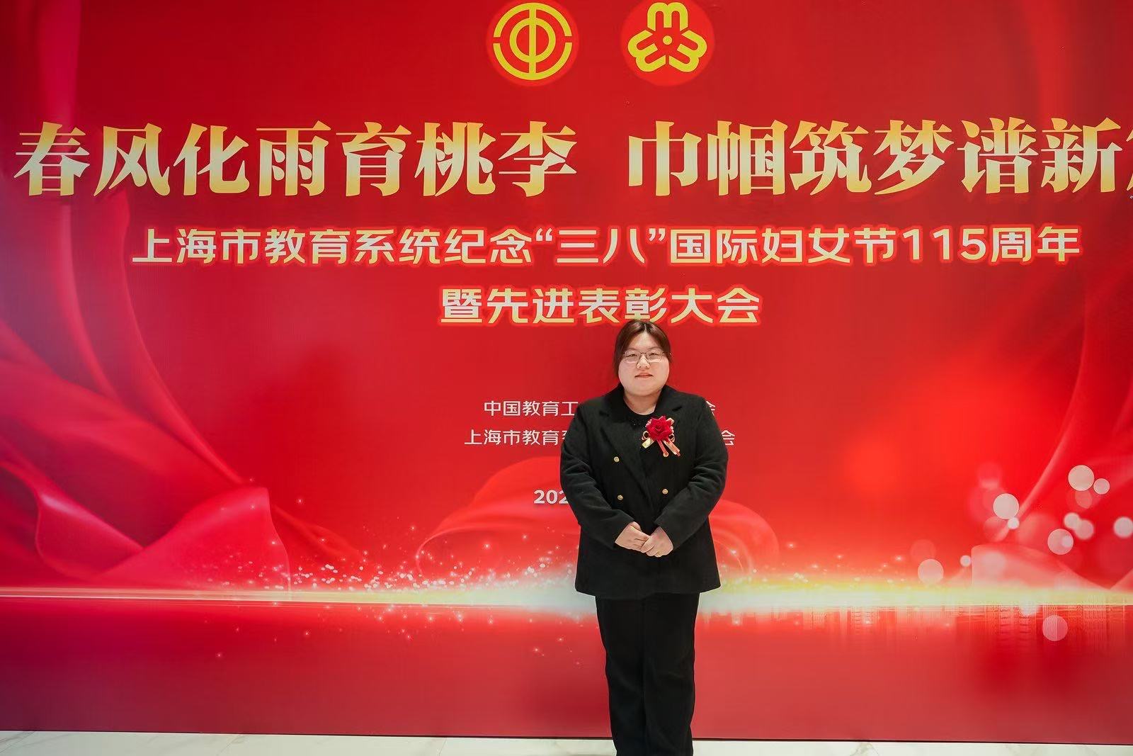 On March 5th at 14:00, the Shanghai Education System held a grand ceremony to commemorate the 115th anniversary of International Women's Day on March 8th and recognize outstanding achievements at the Shanghai Education Hall. Teacher Chen Jianlan was awarded the title of Red Flag Bearer of the Shanghai Education System for the year 2023-2024. This honor is not only a recognition of Ms. Chen Jianlan's personal work, but also a high recognition of her hard work in the education field over the years.