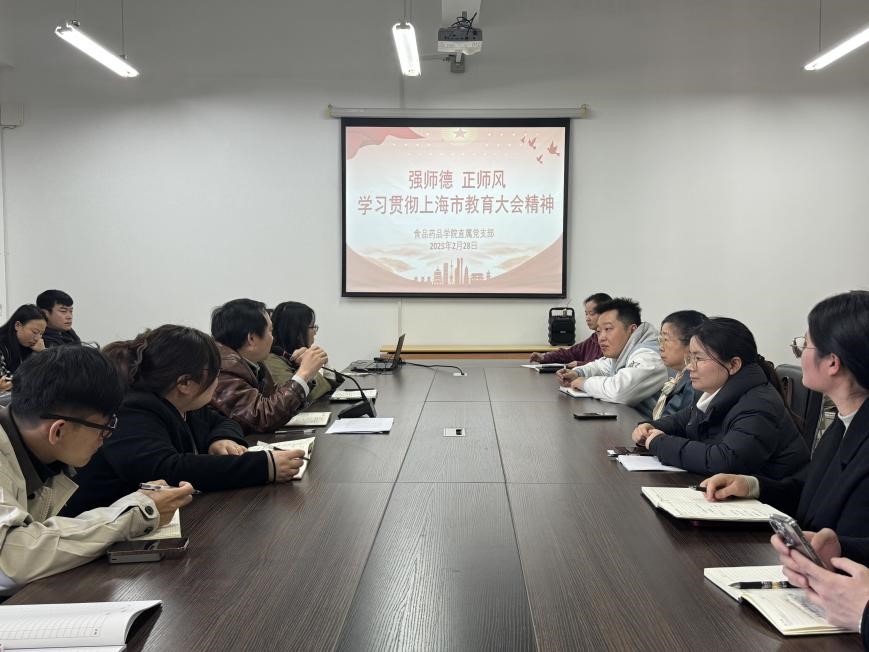 In order to strengthen the construction of teacher ethics and style in the spring semester of 2025, guide teachers to be dedicated to their studies, uphold morality and beauty, on February 28th at 13:00, the Party branch directly under the School of Food and Pharmacy held a special learning activity on Strengthening Teacher Ethics and Upholding Teacher Style in Room 304 of Building 6. All party members of the branch attended, and the meeting was chaired by Professor Wu Youzhi, the secretary of the directly affiliated party branch of the college.