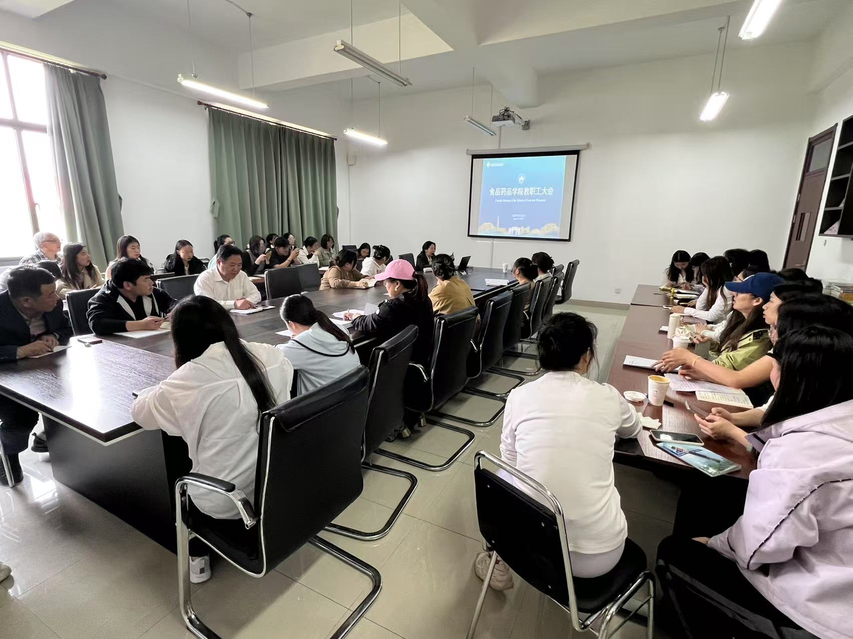 On the afternoon of April 11th, the School of Food and Pharmacy held a meeting of all faculty. The meeting was chaired by Vice President Ji Jing, with Vice President Wang Yuan, Deputy Secretary of the Directly Affiliated Party Branch Chen Jianlan, and all faculty attending.
