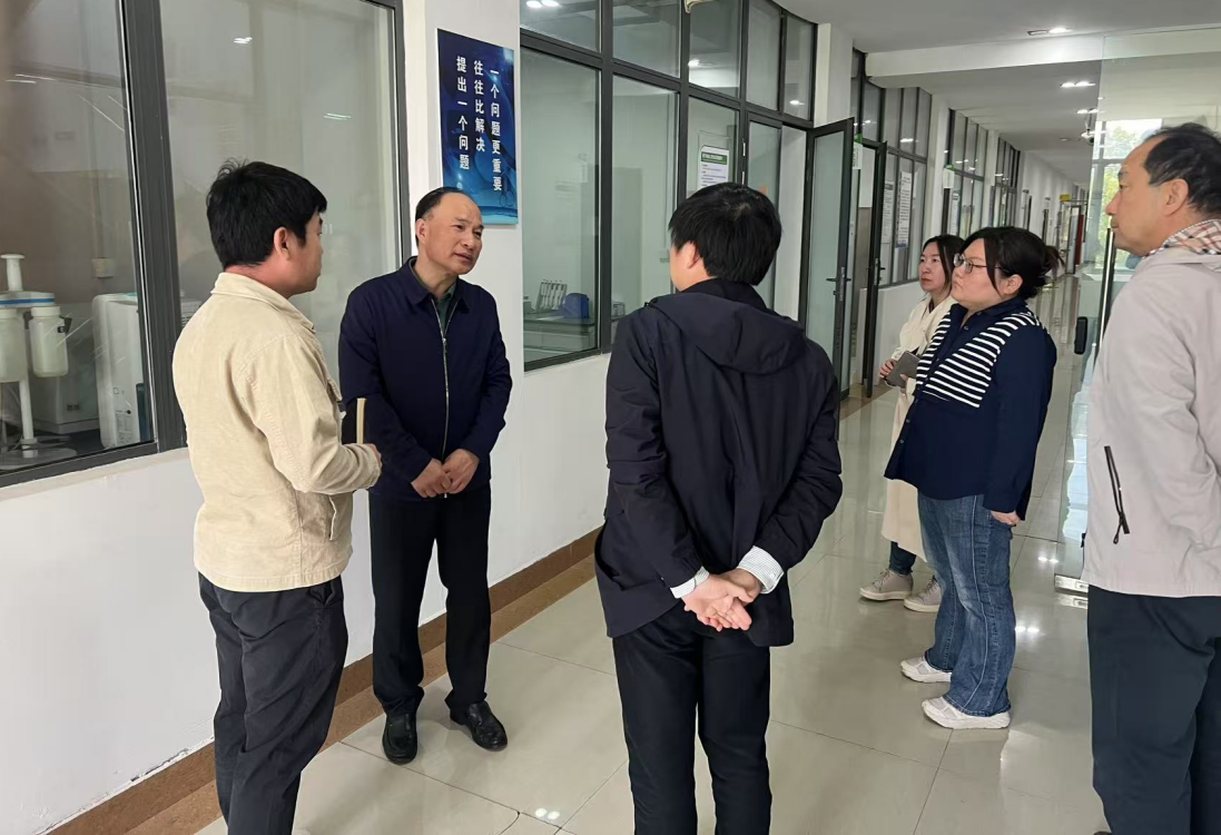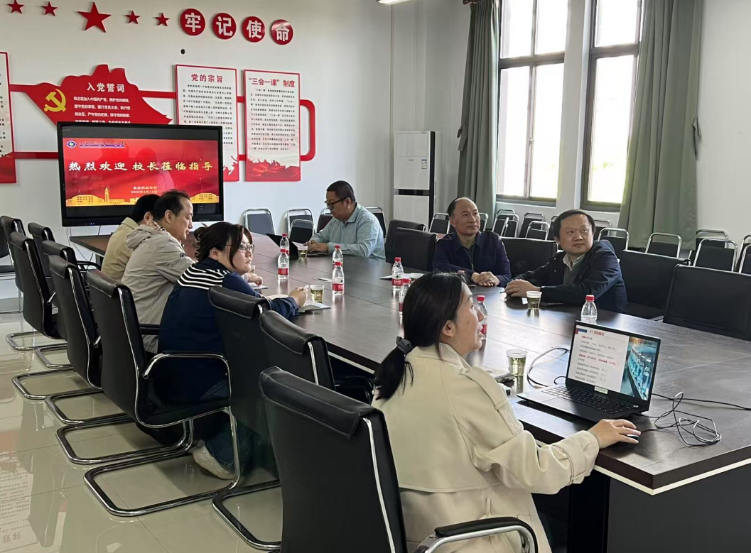 On the morning of April 16th, Professor Cao Yuping, the headmaster, and his delegation visited the School of Food and Pharmacy to conduct research and guidance, conducted on-site inspections of the school's development, and had discussions and exchanges with the school's party and government leadership team. Vice headmaster Professor Wu Youzhi, Director of the Party and Administration Office and Minister of Propaganda Department Ma Jun accompanied the research. Members of the school's Party and Administration leadership team, Assistant Dean Li Xianbao, and Laboratory Director Niu Wei attended the meeting.