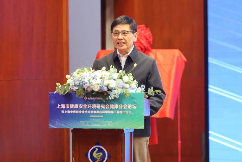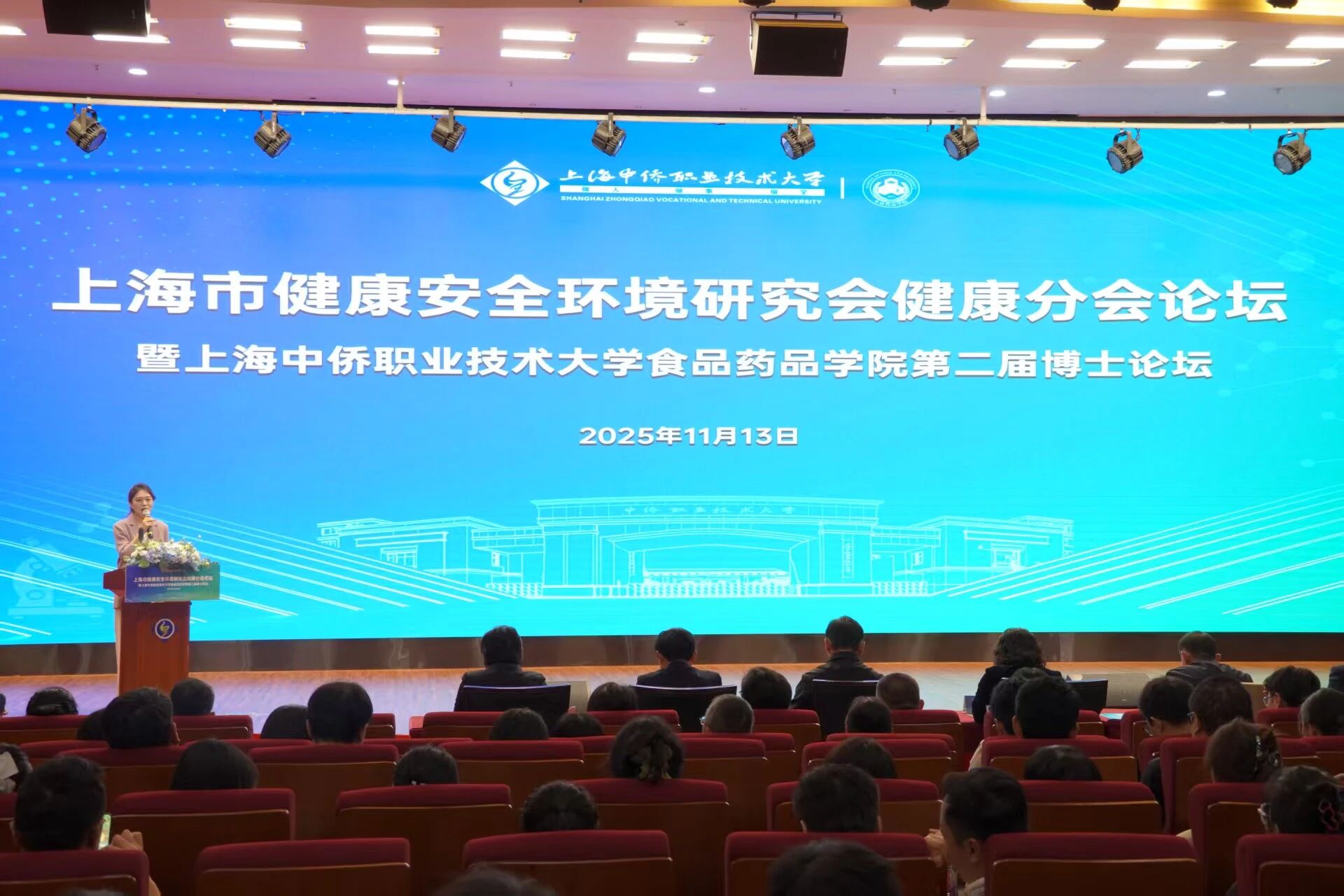 In order to thoroughly implement the important deployment of the 20th National Congress of the Communist Party of China to promote the construction of a healthy China, fully implement the requirements of the Healthy China 2030 plan and the Healthy Shanghai 2030 plan, and focus on solving the pain points of scattered resources and insufficient collaboration between industry, academia and research in the health field, the Health Branch Forum of the Shanghai Health, Safety and Environment Research Association and the Second Doctoral Forum of Shanghai Zhongqiao Vocational and Technical University were held grandly on November 13, 2025 in the report hall on the second floor of the university's graphic and information building. Vice Director Gao Xia of the Health Commission of Jinshan District, Shanghai, Executive Vice President Zhou Jun and Secretary General Cai Dongsheng of the Shanghai Health, Safety and Environment Research Association, Executive Vice President Zhao Bin and Vice President and Chairman of the Health Branch Wu Youzhi of Shanghai Zhongqiao Vocational and Technical University, and Former Dean of the School of Bioengineering at East China University of Science and Technology and Vice Chairman of the Health Branch Zhuang Yingping were invited to attend. Experts, scholars, teachers and student representatives from universities, research institutes, tertiary medical institutions, and health enterprises gathered together to witness the birth of a new platform for communication and cooperation in the health field and explore new paths for high-quality development of the industry.